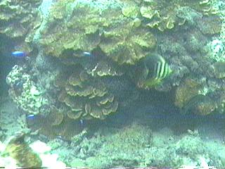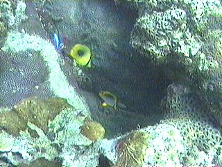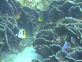 エダミドリイシサンゴの中をよく観察すると何種類かのチョウチョウウオの幼魚を見ることが出来ます。