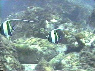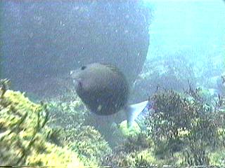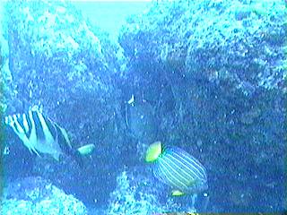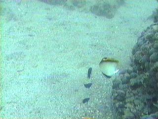たまたま偶然に2匹が写っています。よく見ると奥にニザダイの仲間も写っています。