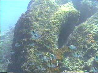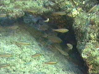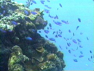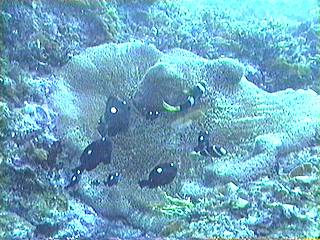 秋にエダミドリイシサンゴの中をよく観察するとこの魚の幼魚がたくさんいます。